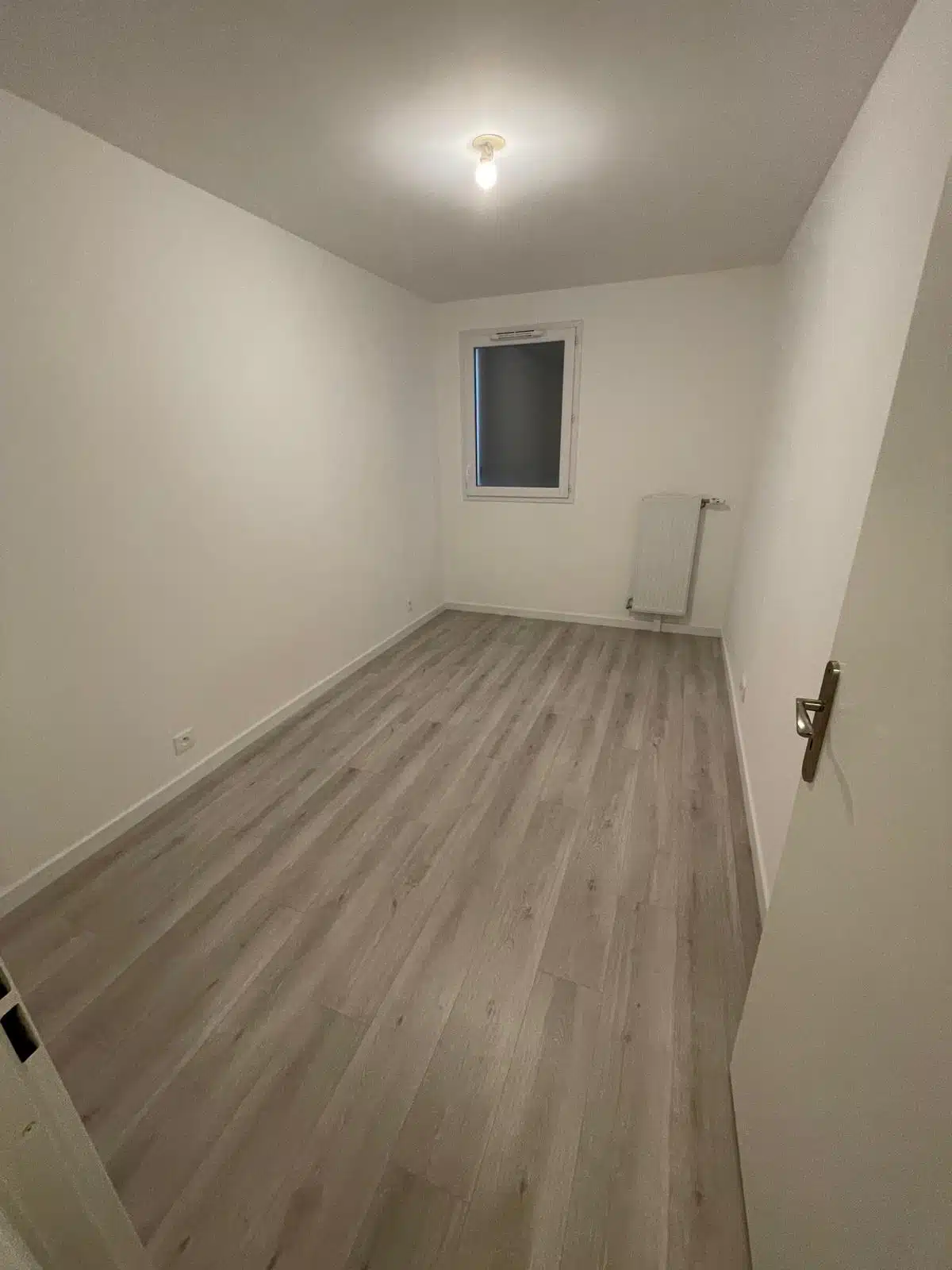 Pose dâun nouveau parquet stratifiĂ© dans toute la piĂšce.